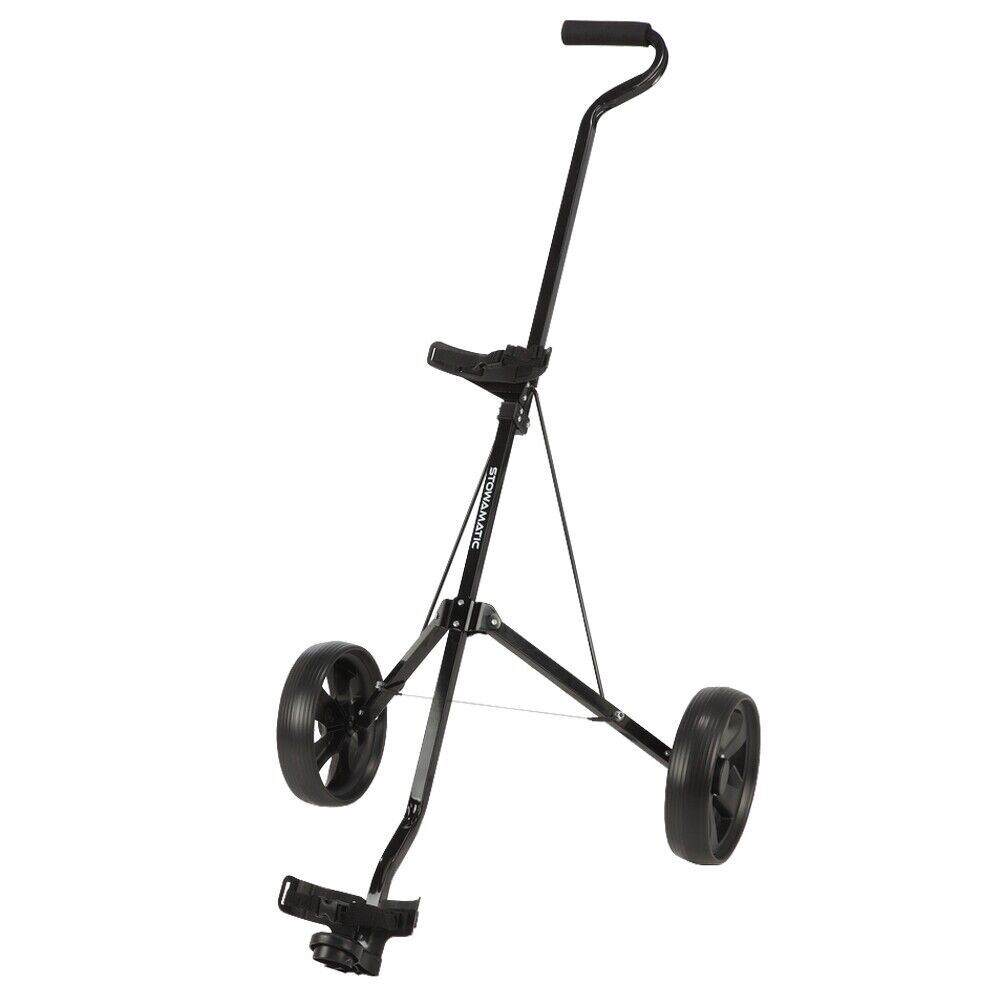A lightweight and versatile golf cart, this folds up in half in one fluid motion for easy storage and transportation. This golf cart features sturdy steel construction, wide wheel base for stability, ball-bearing wheels for smooth rolling, nylon bag straps and snap lock buckles, with wide base, keep your bag securely anchored. This Product is protected and backed up with a 12 month warranty.